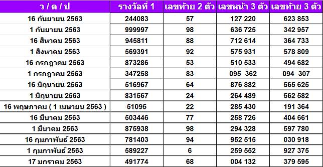 ผลหวยรัฐบาลปี63 | สถ ต หวยออกป 2563 ตารางเปร ยบเท ยบหวยป 63 ผลหวยเลขท ออก 2020