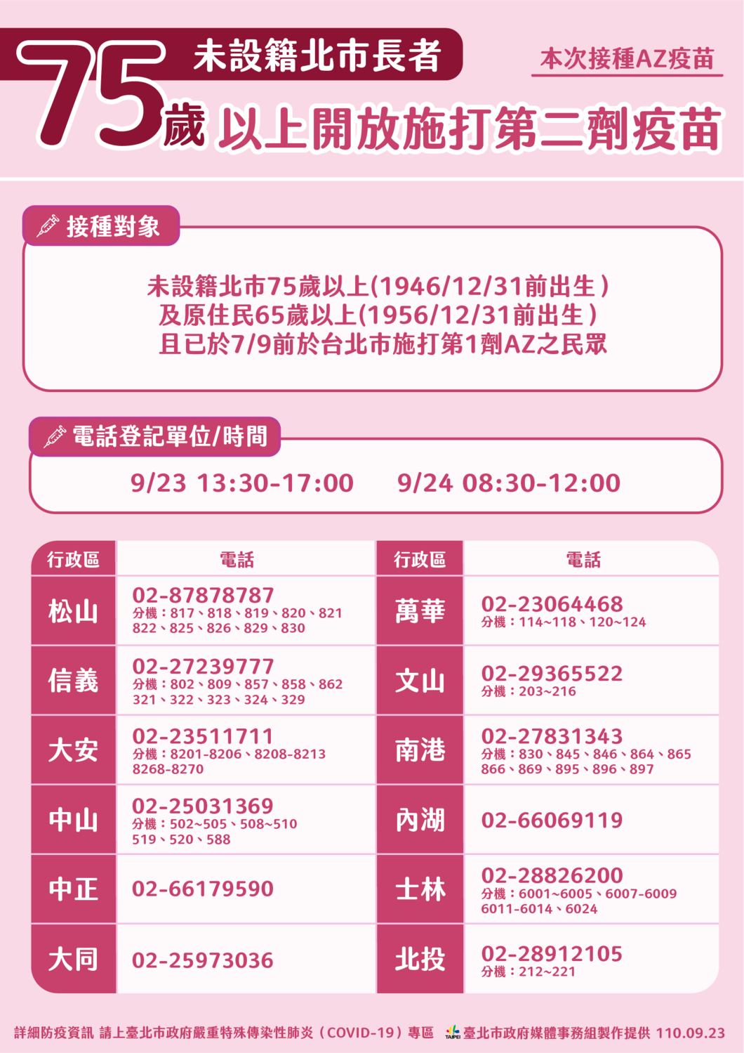 臺北市政府衛生局 活動訊息 75歲 Az第二劑接種預約開始 中央疫苗預約第8期