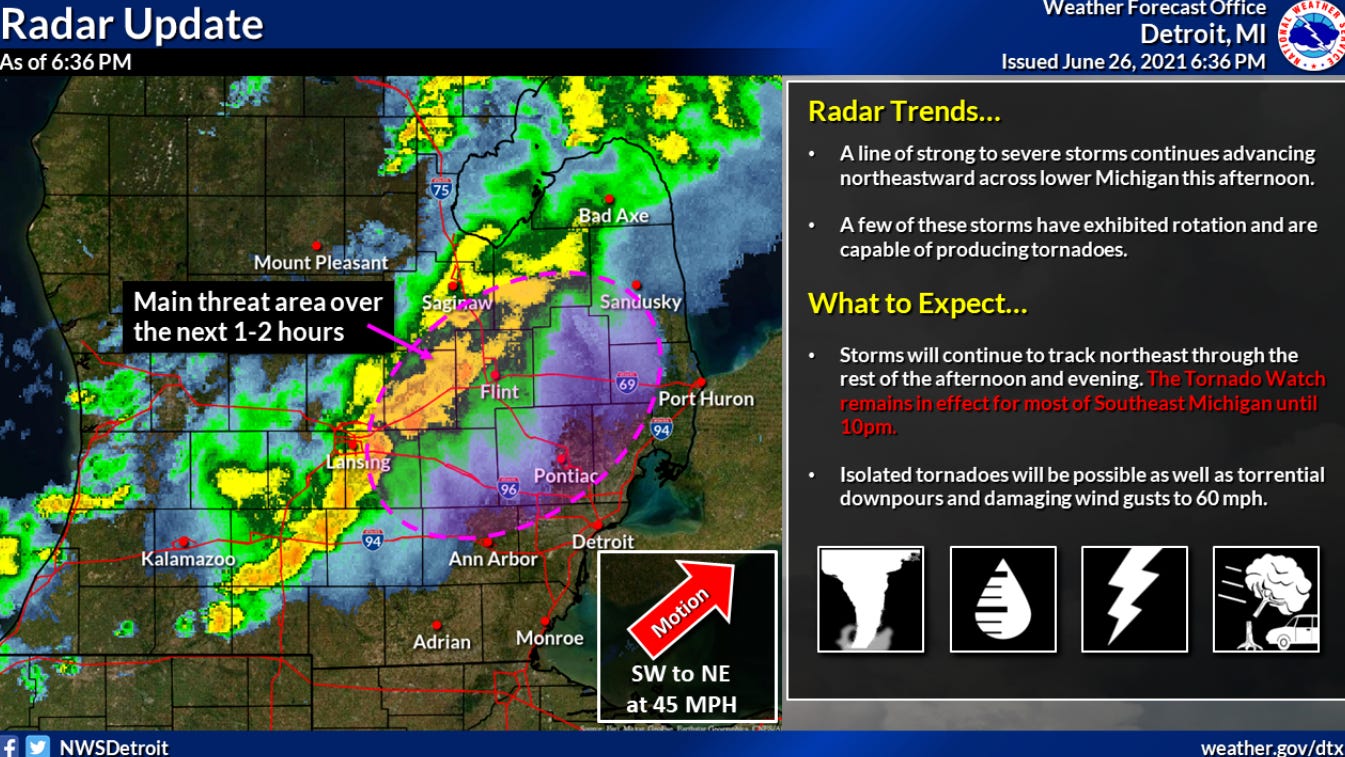 For the evening of Saturday June 26. From 1950 to 2012 the counties in Michigan that experienced the most tornado activity were. The Storm Prediction Center in Norman Oklahoma has issued a Tornado Watch for parts of West Michigan until 10 pm.