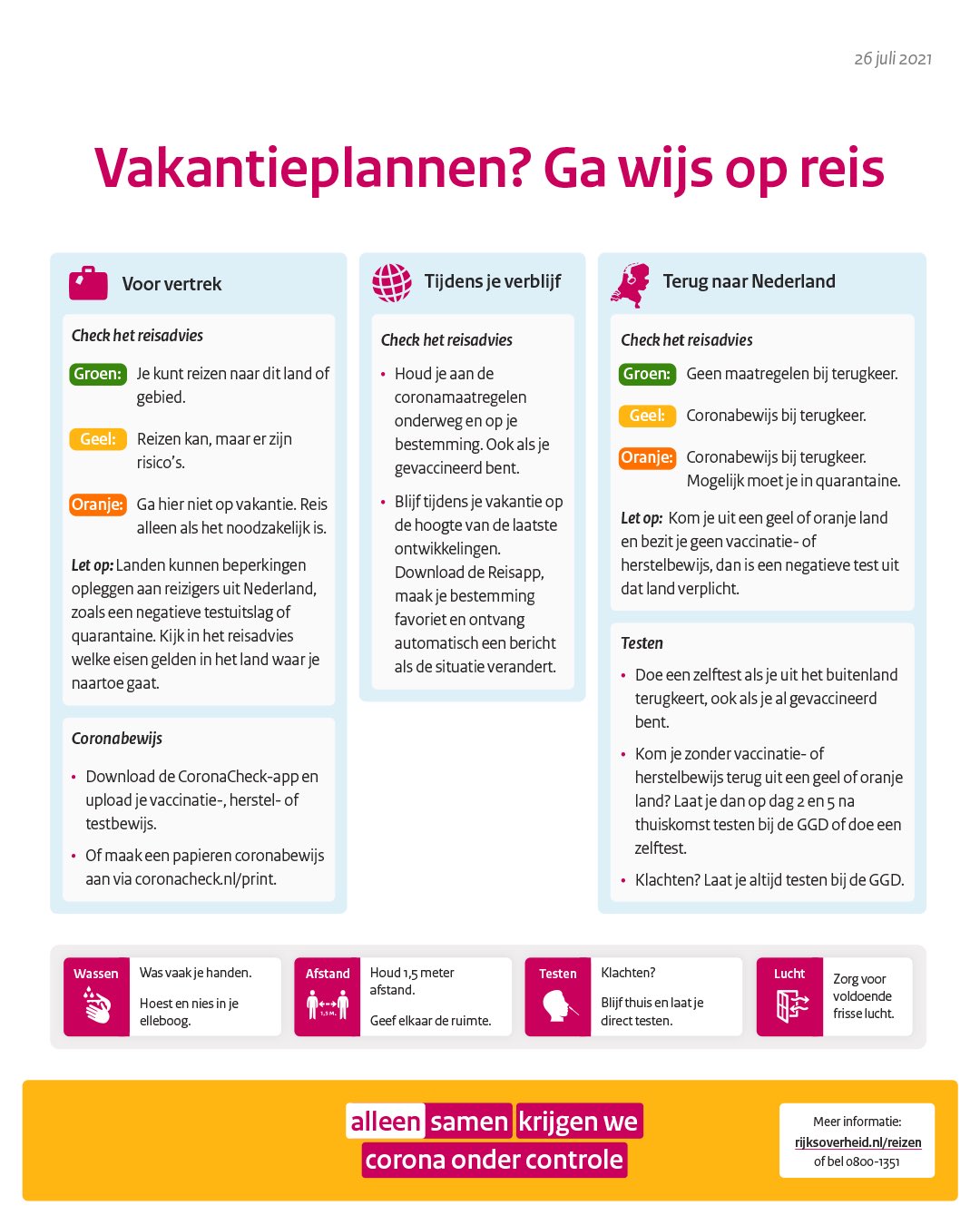 Je leest alles over de situatie in Nederland op de website van de RijksoverheidCheck op Reizen tijdens corona waar je aan moet voldoen voor je terugreis naar Nederland. Nederland gaat drie weken strengere maatregelen tegen het coronavirus tegemoet. Btw-coronamaatregelen verlengd tot 1 oktober 2021.